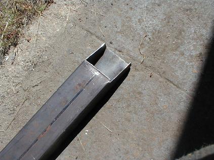 to cut a two inch wide slot in the end of our newly fabricated piece and
