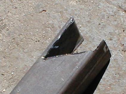 a large piece of angle iron, about 3" on side, which was welded into place