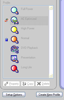 The graphic to the right shows the power profiles that came standard with